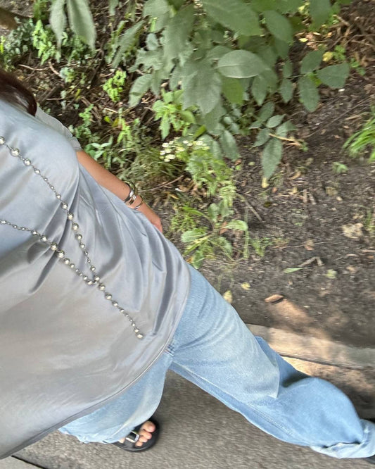White Spotted Full Length Silk Dress Top with Green Silk Train