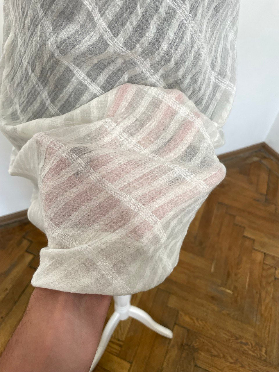 Bias Cut. Sewn with French Seams. Raw, Unfinished, Frayed Neck, Arm, and Hemline