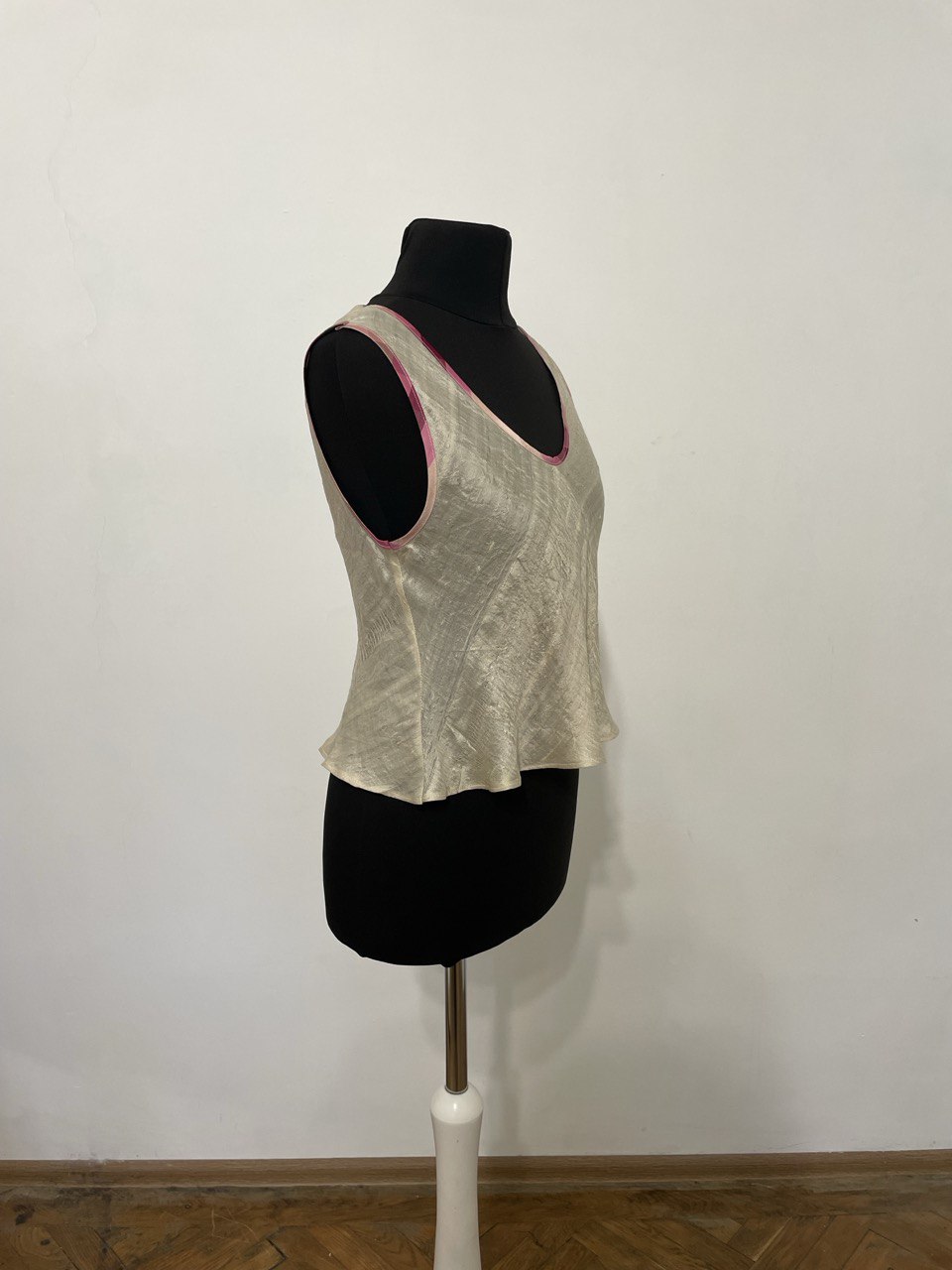 Handmade. Pure Silk. Bias Cut. French Seamed. Contrasting Pink Silk Piping.