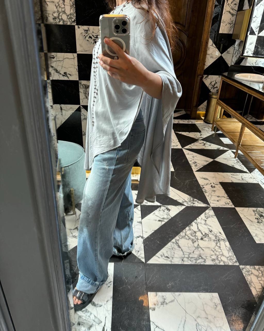 Loose Fitting. Bias Cut. Constructed with French Seams.
