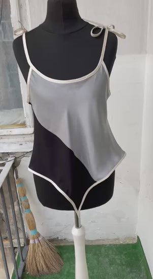 Silver and Black Silk, Wool, and Cotton Rouleau Top