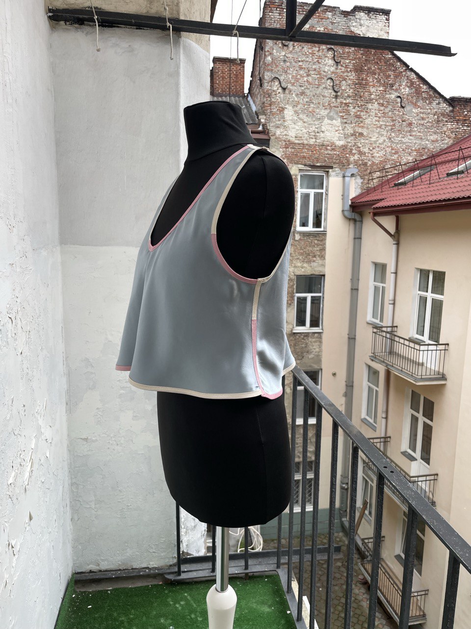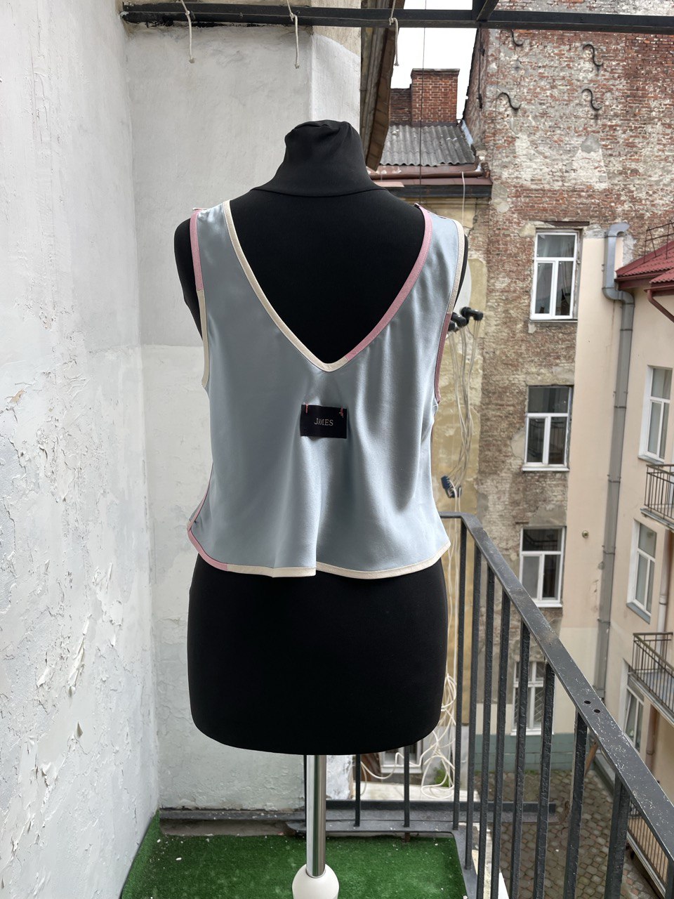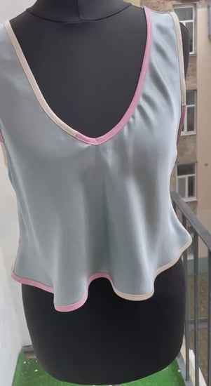 Soft V Neck. Pure Silk Fabric with Contrasting Pink and White Upcycled Silk Binding